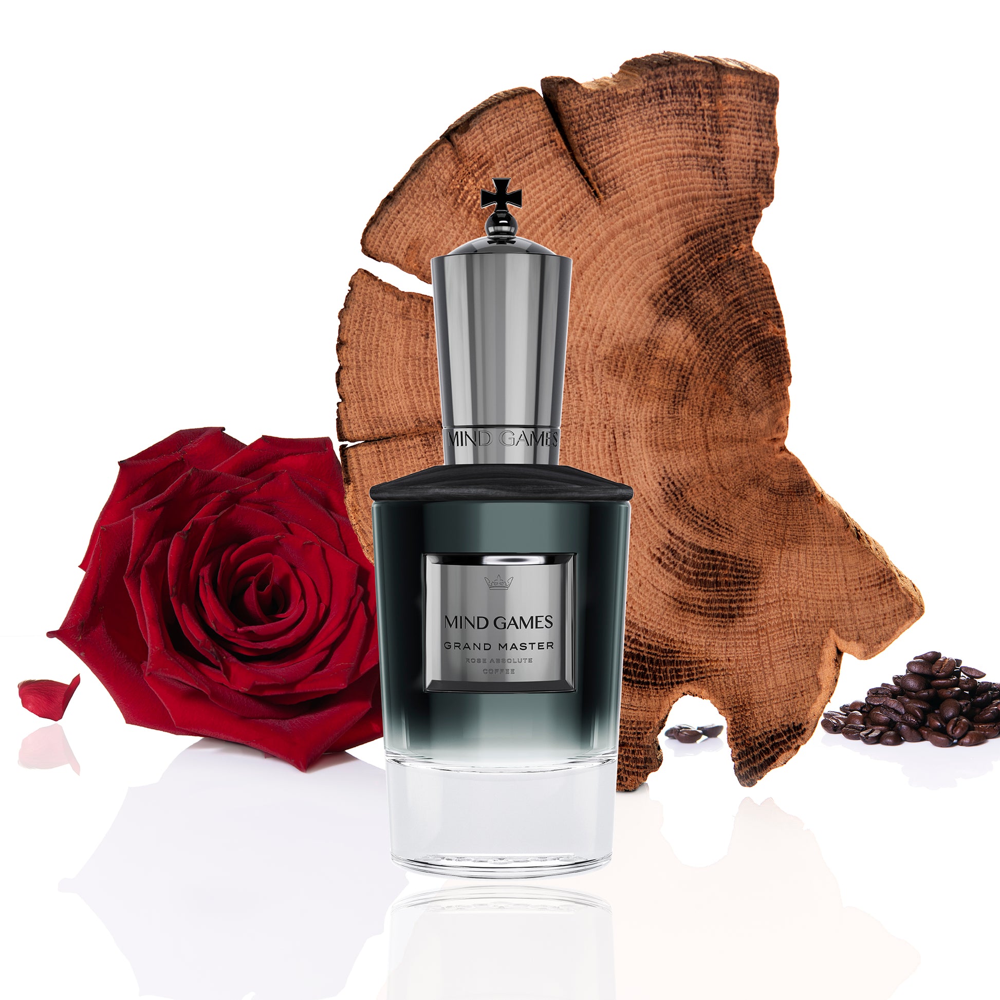 The Mind Games Grand Master cologne strikes swiftly as the softness transforms into unmatched strength. Opening notes of exquisite florals soar willfully while rich and energizing coffee notes mingle with the spicy seduction of incense, myrrh, and dark wood. The flawless harmony of power and tenderness in the Grand Master extrait de parfum astonishes the senses, awakening the knowledge of our own divine potential.